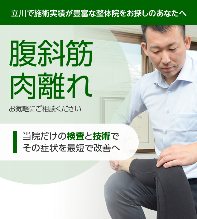 痛みのある場所だけにとらわれず、腹斜筋肉離れの本当の原因を見極めた上で、その場限りではない根本的なケアを、豊富な経験をもとに行っていきますので、安心してお任せください。