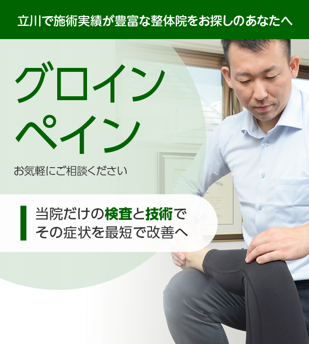痛みのある場所だけにとらわれず、グロインペインの本当の原因を見極めた上で、その場限りではない根本的なケアを、豊富な経験をもとに行っていきますので、安心してお任せください。